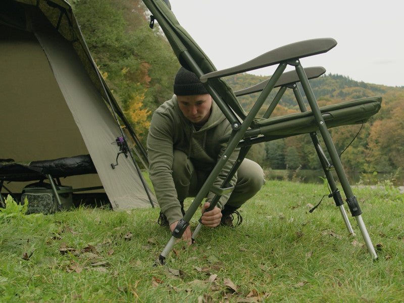 Die ErgoCARP-Serie wurde mit dem Ziel entwickelt, den höchsten Komfort zu einem günstigen Preis zu bieten. Sie zeichnet sich insbesondere durch die Verwendung hochwertiger Materialien und bequemer Matratzen aus, die auf einer stabilen Metallkonstruktion montiert sind, die zu perfekter Stabilität beiträgt. Ein gemeinsames Merkmal der gesamten Serie ist auch die grüne Farbe, ergänzt durch unser originelles Outline-Karpfenlogo.