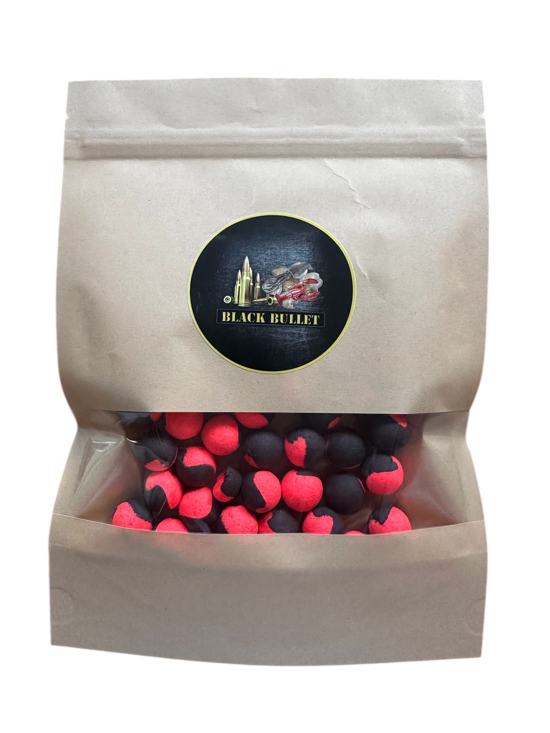 Leicht auswaschbare schwarz rote Pop ups mit dem (Shellfish) Aroma.